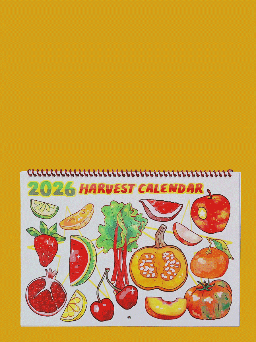 The theme of the calendar is 'harvest' and each month features a different fruit/vegetable along with food/drink associated with it. The project arose from my growing love of risograph printing and botanical drawing, and wanting to challenge my printing skills with a larger project.